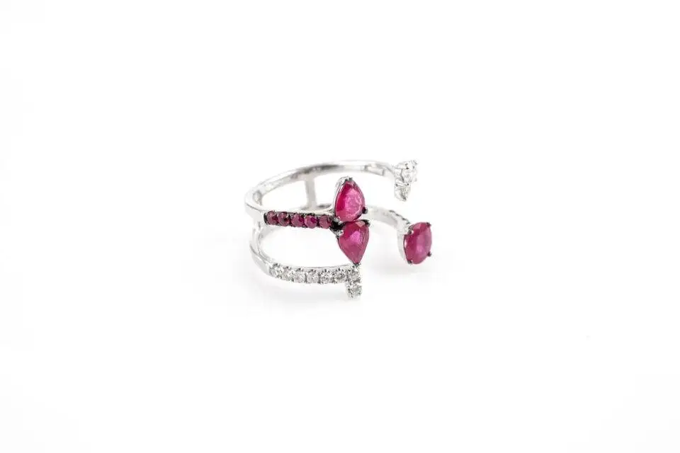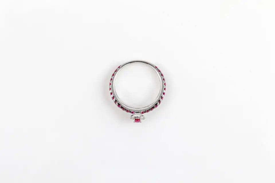 Os rubis, representando a paixão e a força, são meticulosamente engastados, adicionando uma centelha de cor e significado a esta peça exclusiva. Seja para ele ou para ela, este anel é uma declaração de estilo e sofisticação que transborda elegância em todos os ambientes.