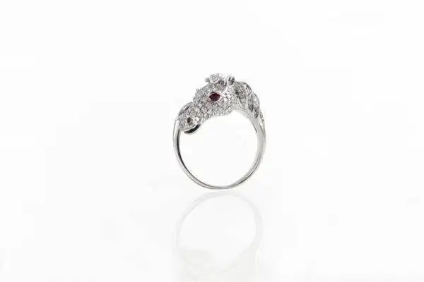 Adquira este Anel de Cavalo com Rubi e Diamantes em Ouro Branco 18k e celebre a beleza e a nobreza desse animal majestoso de uma forma única e elegante.