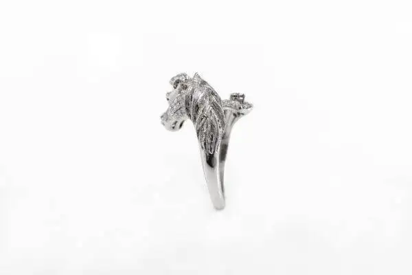 Cada detalhe deste anel é uma homenagem à graça e à beleza dos cavalos. O ouro branco 18k confere um brilho atemporal, enquanto os diamantes cuidadosamente dispostos criam um deslumbrante jogo de luzes.