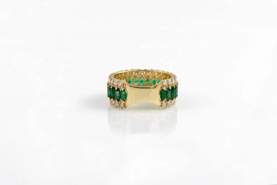 Por se tratar de esmeraldas naturais, cada produção deste anel pode ter uma tonalidade própria, o que faz com que cada peça seja exclusiva e especial para quem a usa.